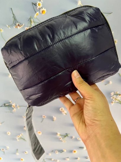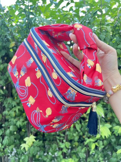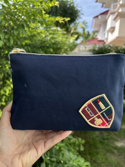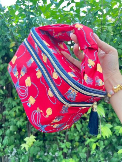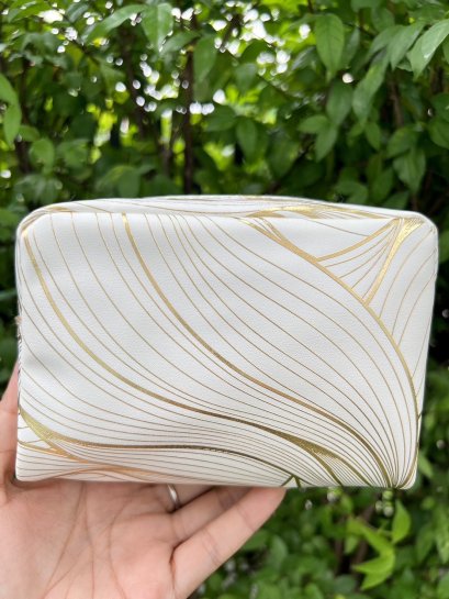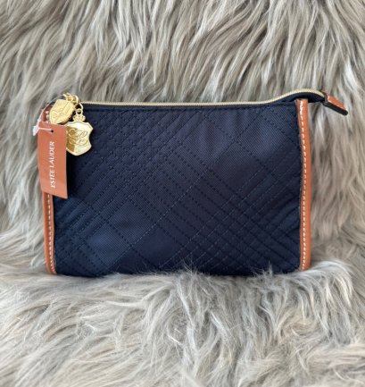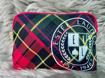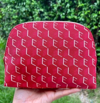 กระเป๋าเครื่องสำอางค์ ESTEE ใบแดง พิมพ์ ซิปสีทอง ด้านในสีชมพูแดง