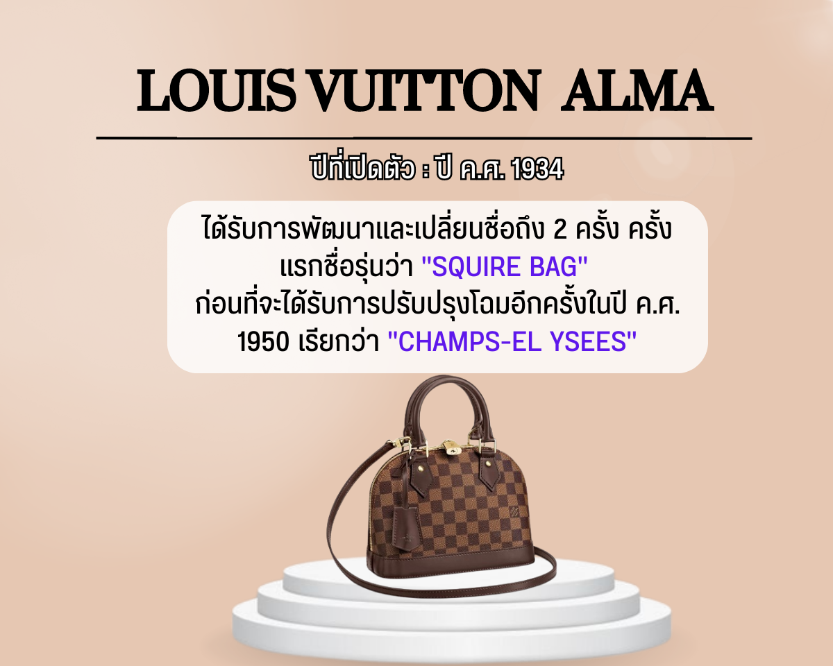 "Alma" กระเป๋าทรง Domed Shape อีกรุ่นคลาสสิกจากหลุยส์วิตตอง ออกแบบโดย Gaston-Louis Vuitton เปิดตัวในปี 1934 โดยเชื่อกันว่าเป็นกระเป๋าสั่งทำพิเศษเพื่อ Gabrielle Coco Chanel (ปี 1925) ในตอนแรกกระเป๋าถูกตั้งชื่อว่า “The Squire Bag” จากนั้นเปลี่ยนชื่อเป็น "Champs-Elysées" และต่อมาก็ลงเอยด้วยชื่อ "Alma" ตามชื่อสะพานสำคัญในกรุงปารีส โดยการออกแบบ Alma ได้แรงบันดาลใจมาจาก Art Deco และมีให้เลือกหลากหลายขนาด โดยในปี 2010 ได้เปิดตัวขนาด BB ซึ่งเป็นไซซ์ที่เล็กที่สุด มาพร้อมกับสายสะพายใช้เป็น Crossbody ได้ นับเป็นอีกรุ่นในตำนานที่คนจดจำได้มากที่สุดและยังคงคลาสสิกมาจนถึงปัจจุบัน