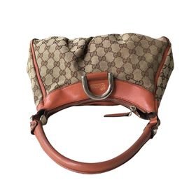 Beige/Purple GG Canvas Small D-Ring Hobo Bag