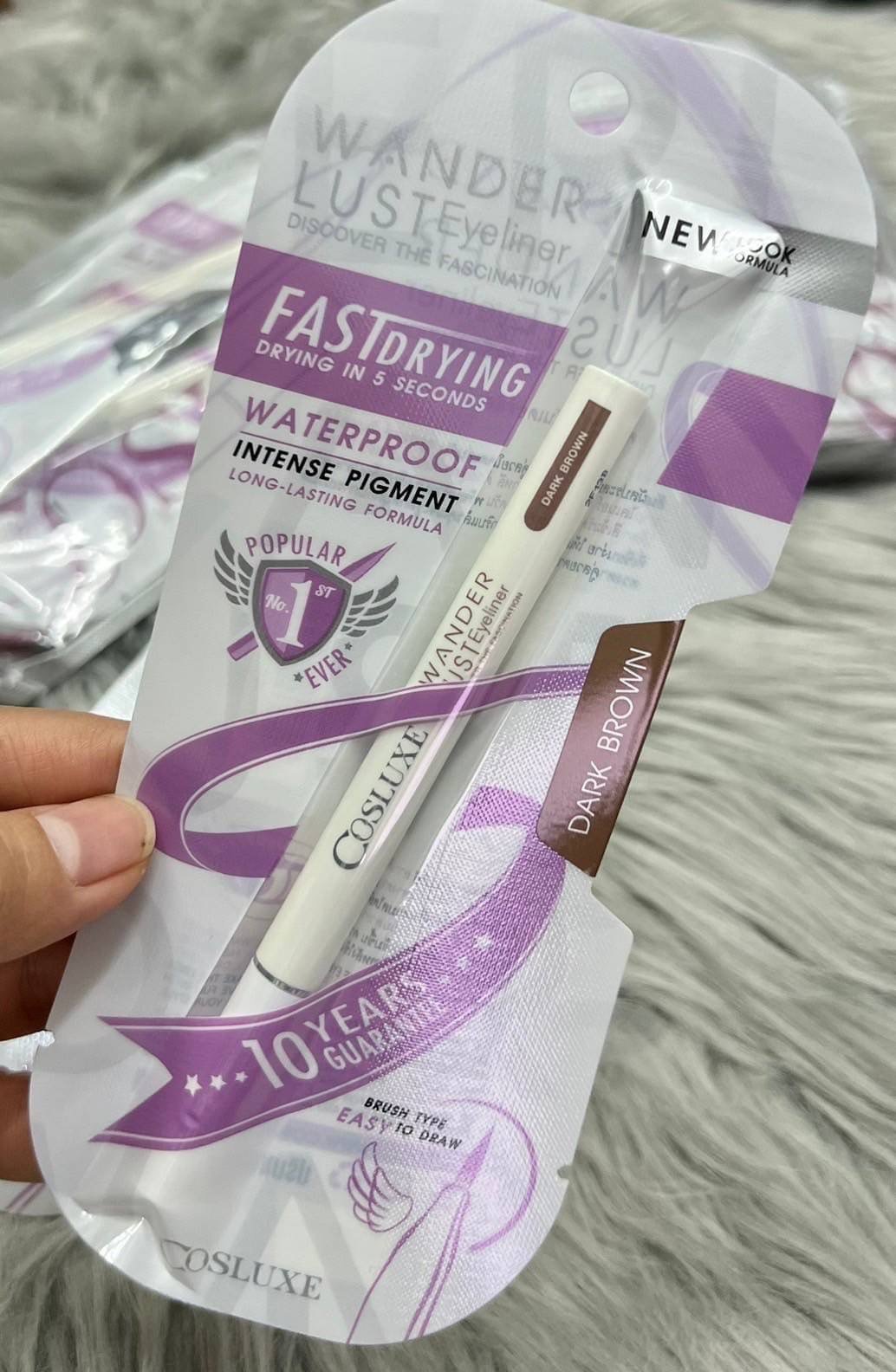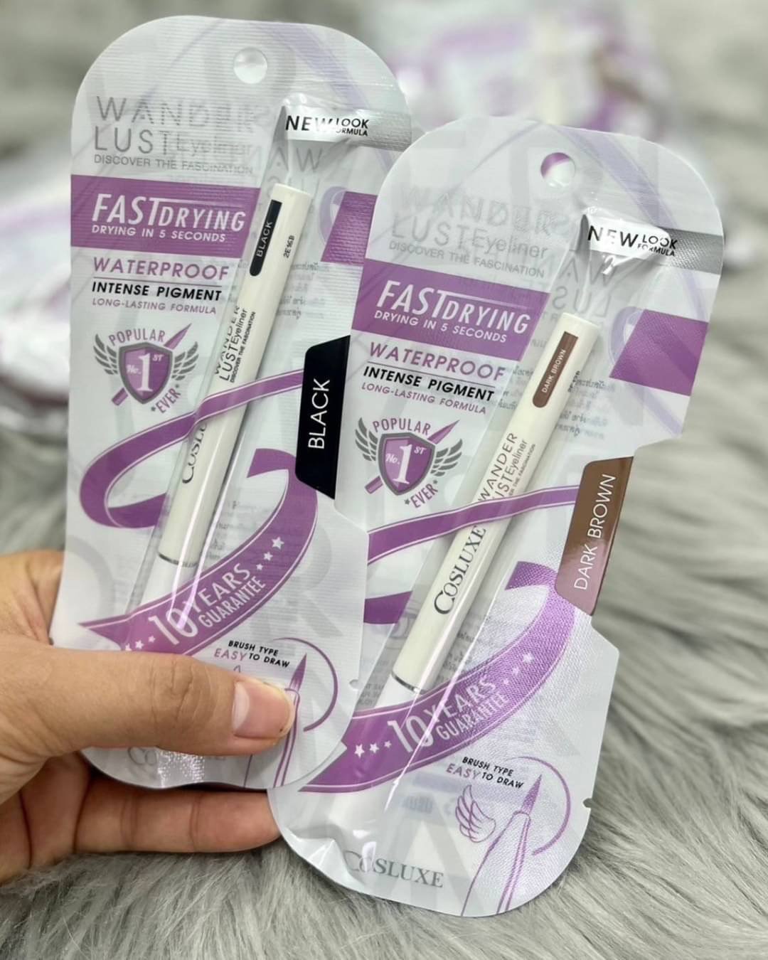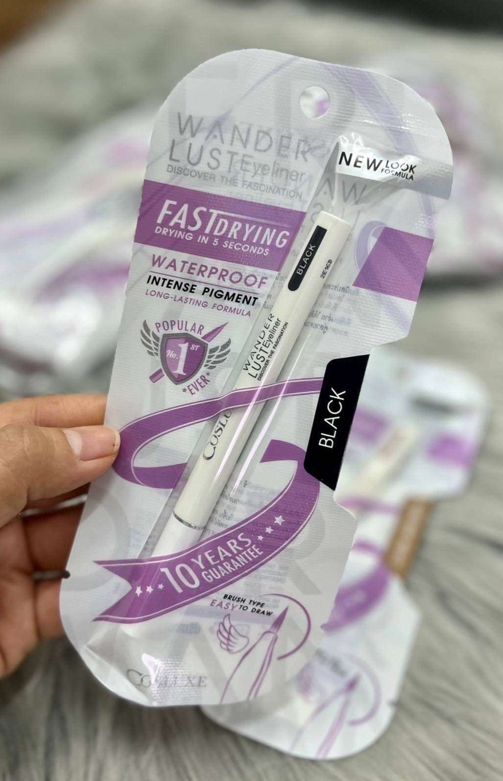 อายไลเนอร์สีเข้มชัด สูตรกันน้ำ แบบแห้งเร็ว ไม่เลอะตา ติดทนนานตลอดวัน มีหัวแปรงเรียวเล็ก ปลายพู่กันที่เขียนง่าย ช่วยทำให้เส้นเรียบและคมกริบ ตาจะดูโตขึ้น เซะซี่ขึ้นค่าา