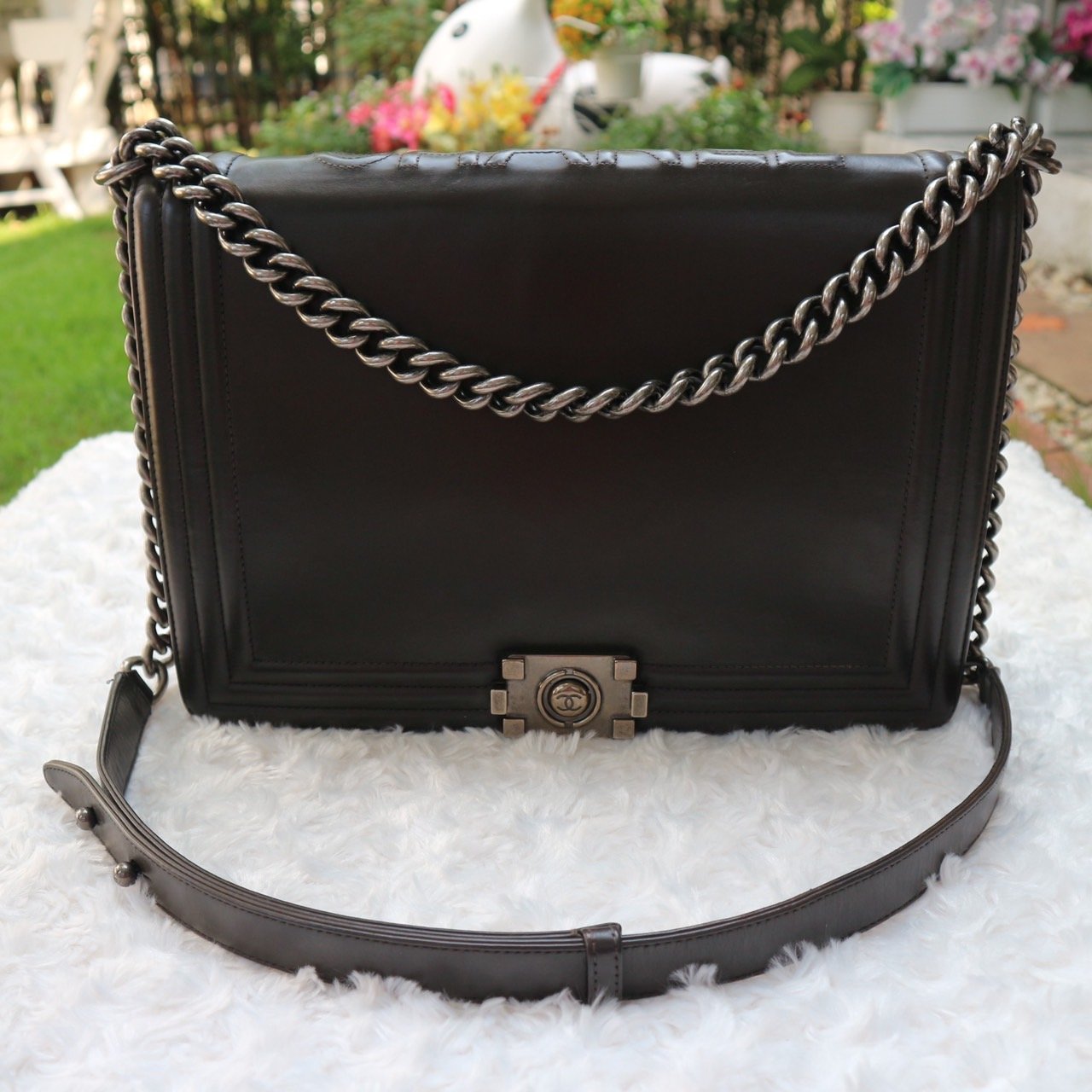 BOY CHANEL SMOOTH LEATHER BLACK BAG