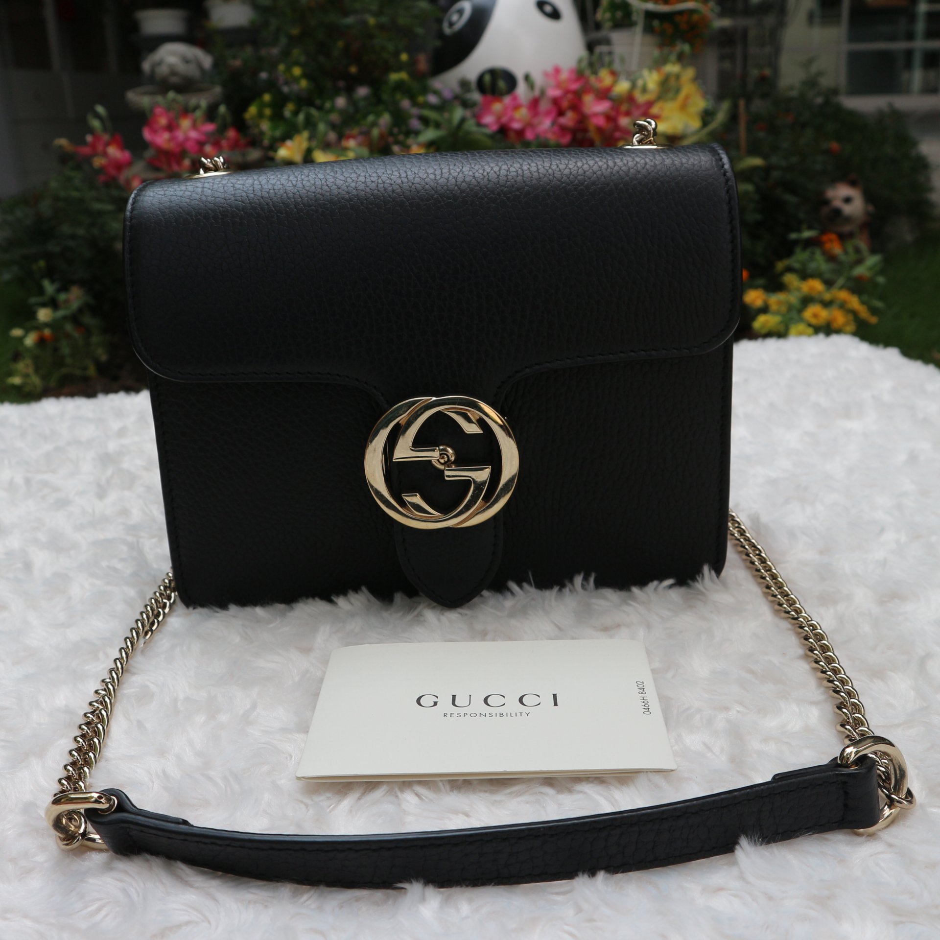 Gucci Interlocking bagมีใบสีแดงแล้วก็ต้องมีใบสีดำค่า สวย เรียบหรู ดูแพงสุด ๆอปก.เล่ม510304 523040