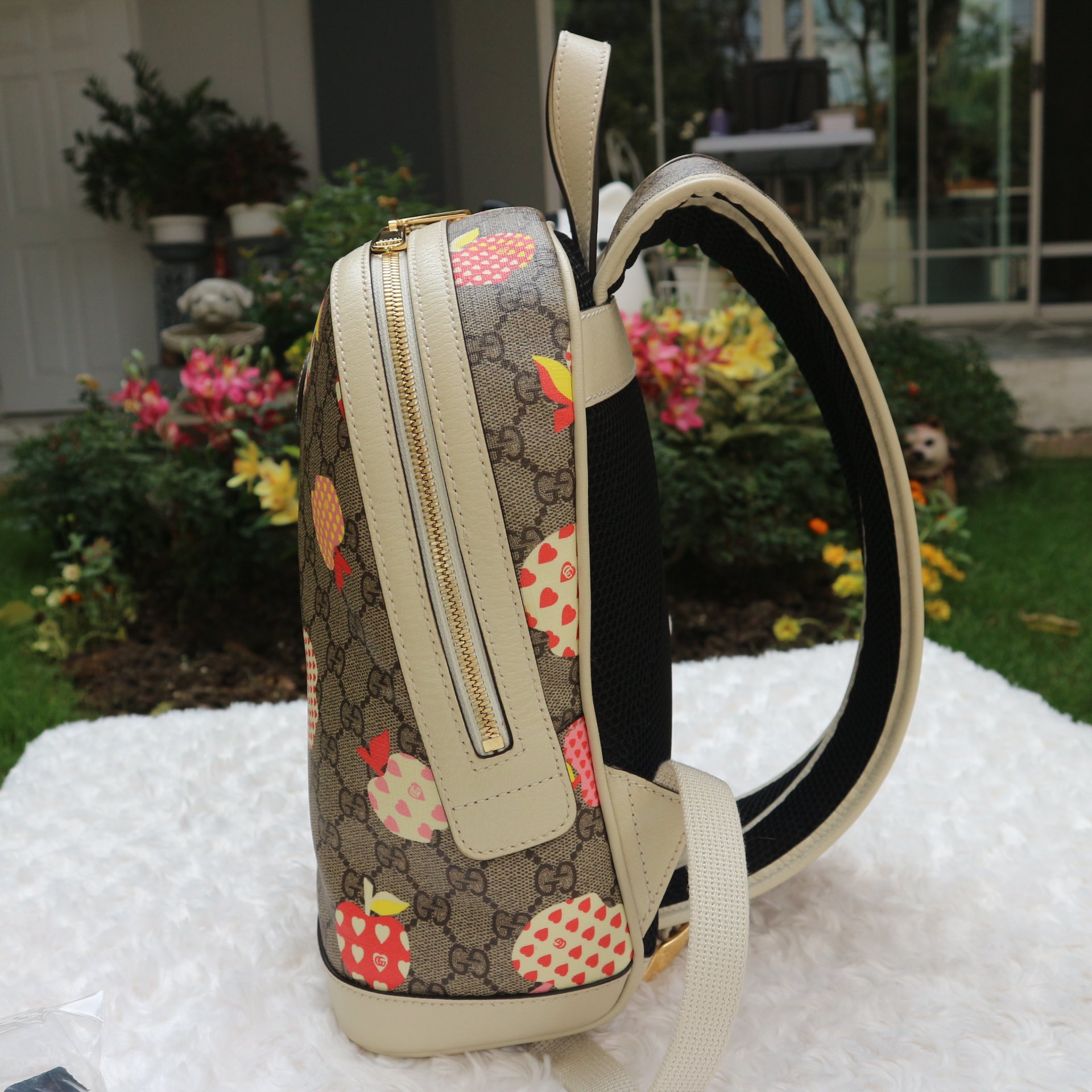 GUCCI Valentine's Day Apple-print Backpack In Neutralsเป้ไม่เคยผ่านการใช้งานsาคาร้อนเงินเลยจ้าาาอปก.การ์ด เล่ม ถุงผ้า552884 493075ขนาด 9x12 นิ้วต้องรีบจัดจองแล้วนะคะ