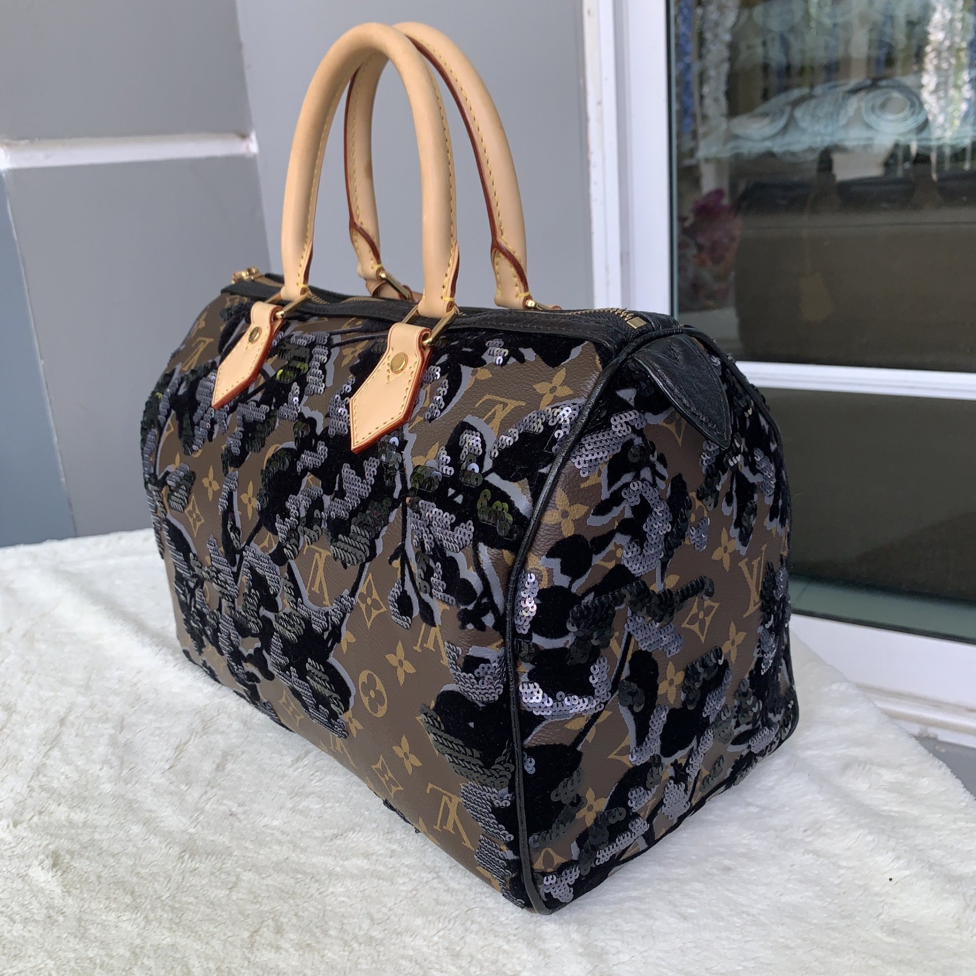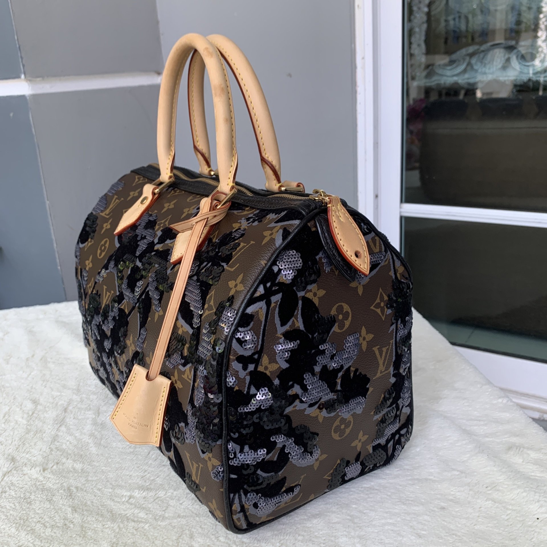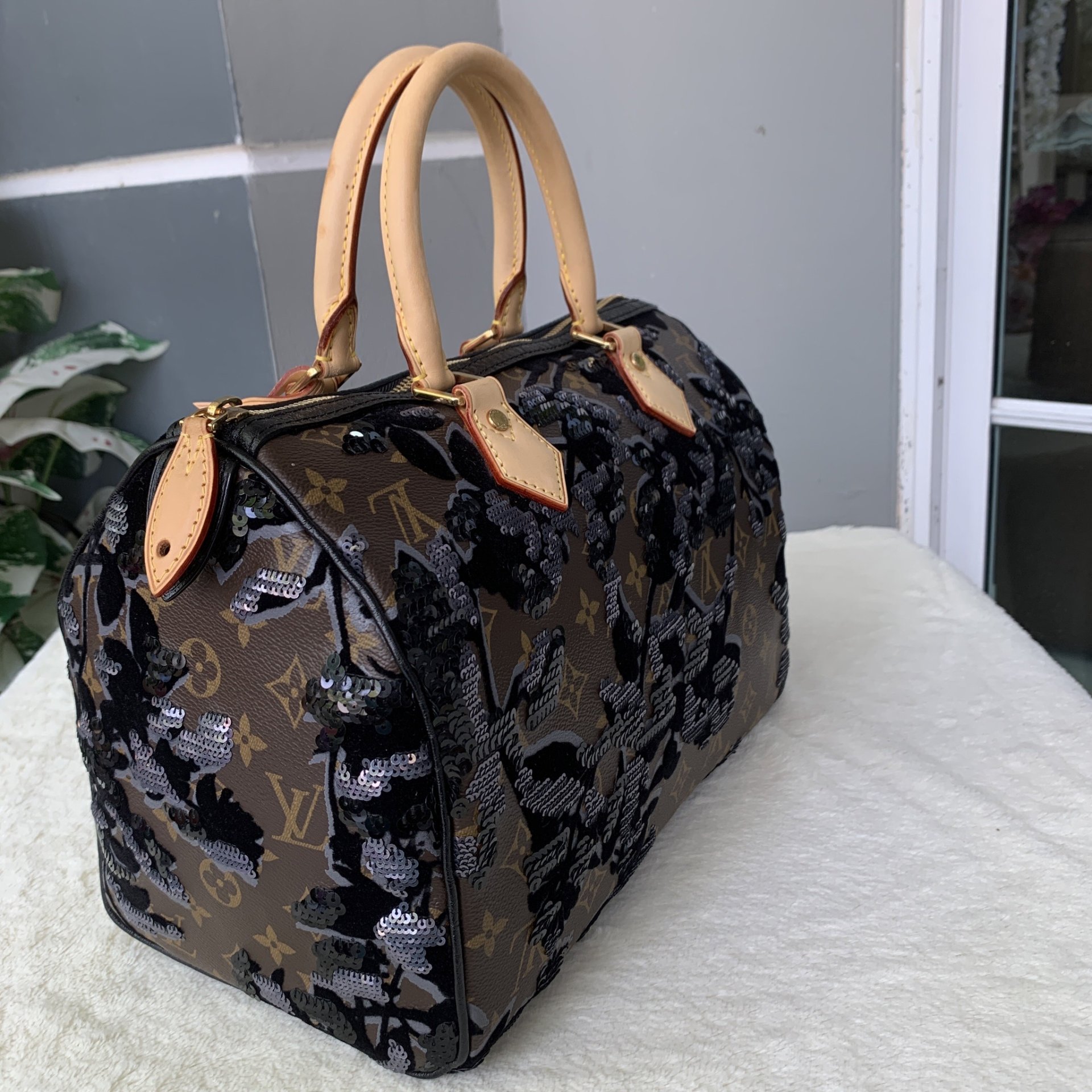 LV Monogram Fleur De Jais Speedy 30 Bagใบนี้ปักด้วยมือทั้งใบ ควรค่าแก่การเก็บสะสมหรือจะถือออกงานก็สวยค่าDC TR2180ขนาด ฐาน 12 x สูง 10 นิ้วอปก. การ์ด เล่ม กุญแจแม่ลูก ถุงผ้า
