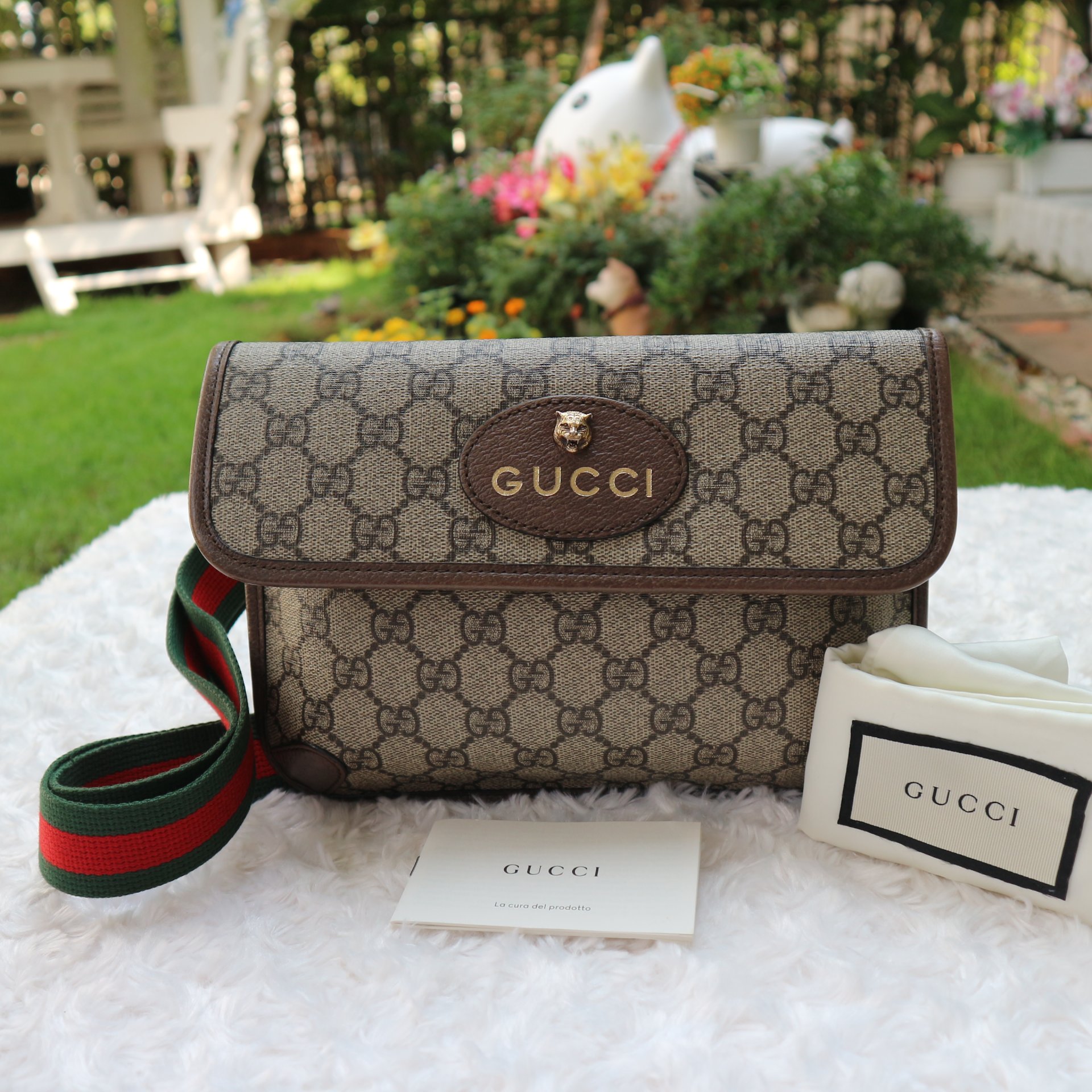 GG Supreme Monogram Neo Vintage Web Belt Bag Brown