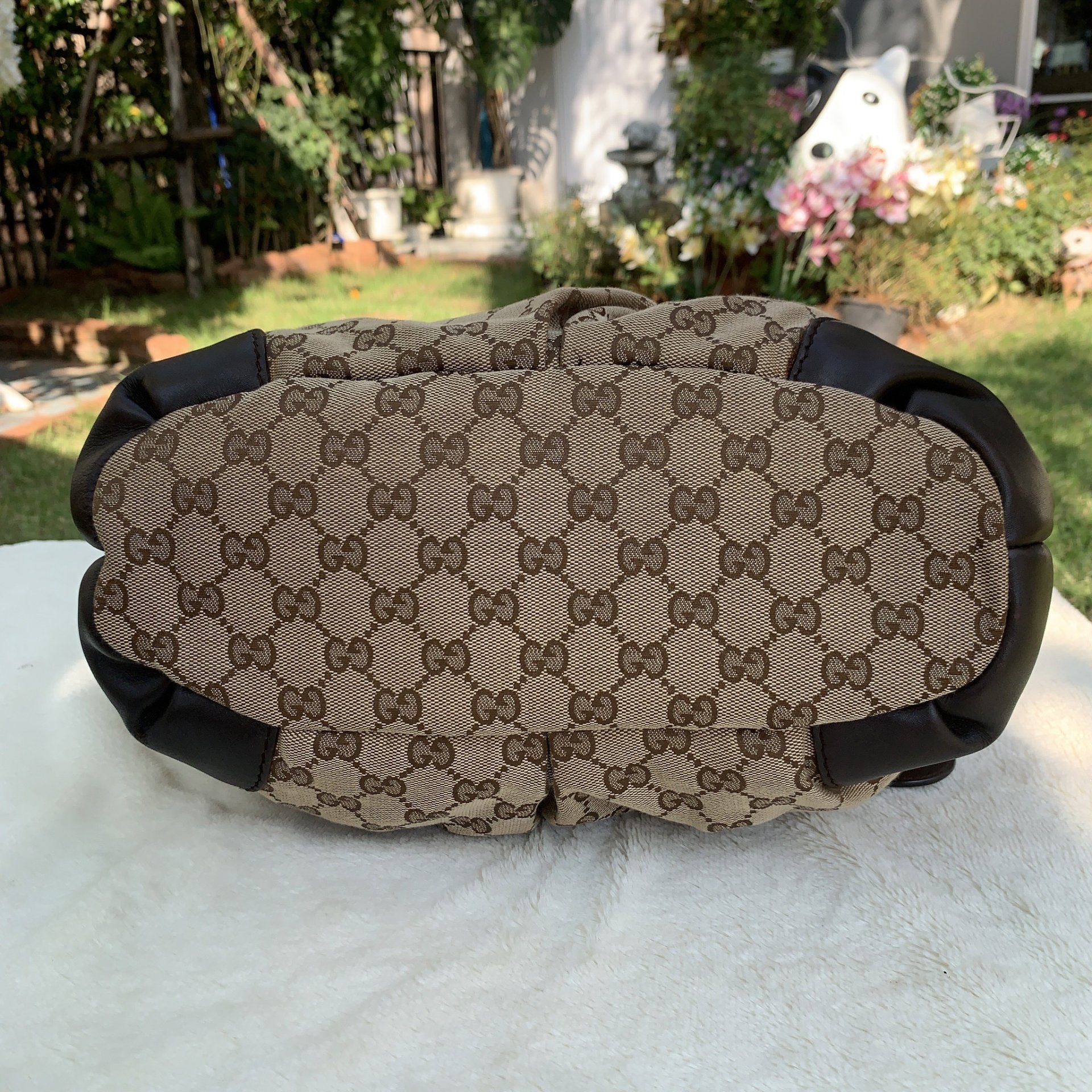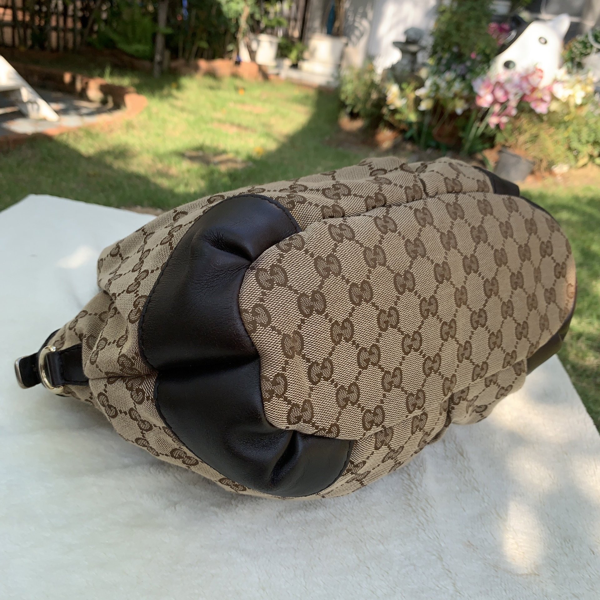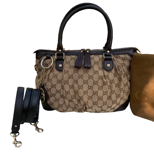 Beige/Ebony GG Canvas Medium Sukey Toteมีสายสะพายมาให้ด้วยค่ะใบนี้ ตัวผ้ายังสวย ด้านในสะอาด247902 208998อุปกรณ์ ถุงผ้า